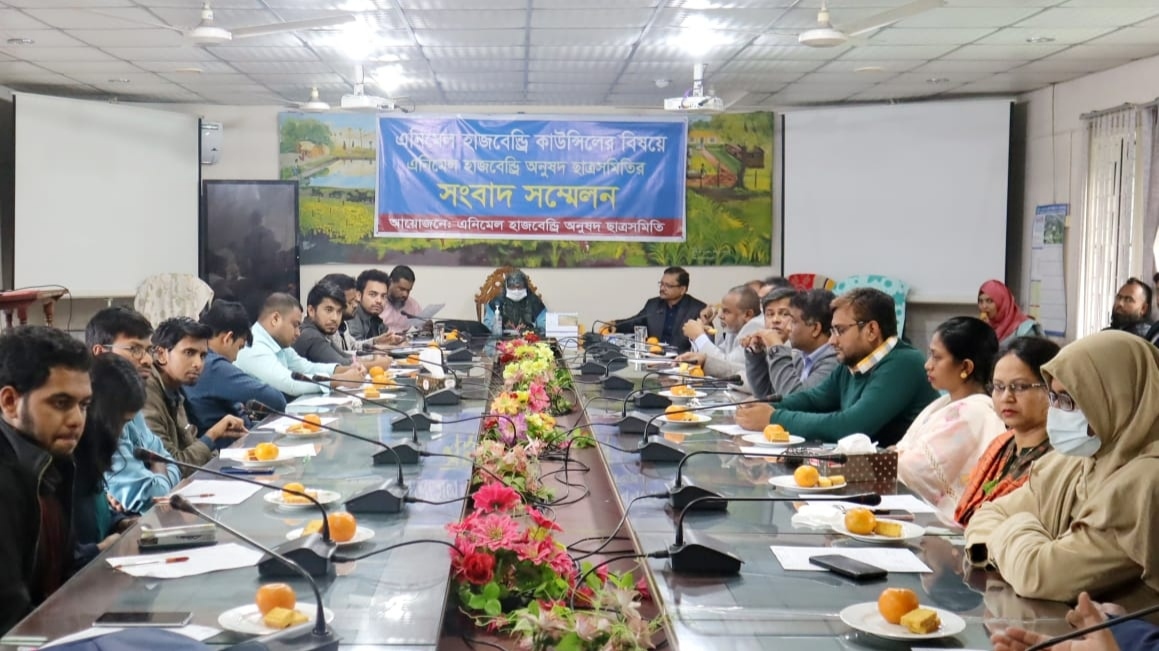 আজ বুধবার (২৭ ডিসেম্বর ২০২৩) বিশ্ববিদ্যালয়ের অ্যানিমেল হাজবেন্ড্রি অনুষদীয় সভাকক্ষে আয়োজিত এক সংবাদ সম্মেলনে এই দাবি জানায় অ্যানিমেল হাজবেন্ড্রি অনুষদীয় ছাত্রসমিতি।
