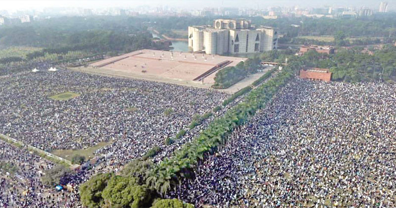 পূর্ব ঘোষণা অনুযায়ী গতকাল বুধবার বেলা ২টায় জানাজা শুরু হওয়ার কথা থাকলেও তা অনুষ্ঠিত হয় বিকেল ৩টা ৩ মিনিটে। তবে সকাল থেকেই জানাজায় অংশগ্রহণের জন্য মানিক মিয়া এভিনিউতে জড়ো হতে থাকেন সারাদেশ থেকে আসা হাজার হাজার মানুষ। সকাল ১০টার আগেই মানিক মিয়া এভিনিউ হয়ে উঠে লোকে লোকারণ্য। আর ১১টা বাজার আগেই জানাজার জনস্রোত ছড়িয়ে পড়ে মিরপুর সড়ক, খামারবাড়ি, বিজয় সরণী, ফার্মগেট ছাড়িয়ে আশপাশের এলাকায় উপচে পড়ে ভিড়। তবে এরপর সময় যতই গড়িয়েছে ততই বিস্তৃত হয়েছে জানাজার দীর্ঘ। বেড়েছে জানাজায় অংশ নেয়া মানুষের সংখ্যা। কোটি মানুষের ঢলে কারওয়ান বাজার, বিজয় সরণী, আগারগাঁও, মিরপুর সড়কে বন্ধ হয়ে যায় যান চলাচল। ফলে দূর-দূরান্ত থেকে পায়ে হেঁটেই মানুষ অংশ নিতে আসেন জানাজায়। ঢাকামুখী মানুষের এই স্রোত চলতে থাকে জানাজার নামাজ শুরুর আগ পর্যন্ত। রাজধানীর বিভিন্ন বাস টার্মিনাল, কমলাপুর, বিমানবন্দর, তেজগাঁও রেল স্টেশন, সদর ঘাটে দেখা যায় দলে দলে মানুষ আসছেন জানাজায় অংশগ্রহণ করতে। অনেকেই আবার বিভিন্ন এলাকা থেকে বাস, মাইক্রোবাস ভাড়া করে আসেন জানাজায় অংশ নিতে। আর দিনভর মেট্রোরেলে কয়েক লাখ মানুষ আসেন মানিক মিয়া এভিনিউয়ে।