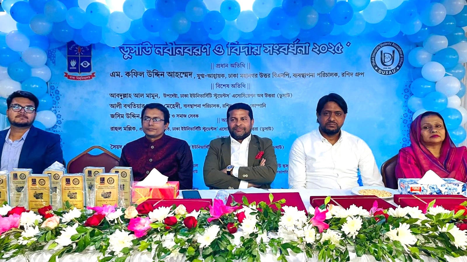 শনিবার(২৯ নভেম্বর) উত্তরা বাংলাদেশ ক্লাব মিলনায়তনে আয়োজিত এ অনুষ্ঠানে ঢাকা বিশ্ববিদ্যালয়ের বর্তমান ও সাবেক শিক্ষার্থী, বিশিষ্ট অতিথি এবং সংগঠনের সদস্যরা অংশ নেন। অনুষ্ঠানে প্রধান অতিথি হিসেবে উপস্থিত ছিলেন বিশিষ্ট সমাজসেবক ও রশিদ গ্রুপের ব্যবস্থাপনা পরিচালক এম. কফিল উদ্দিন আহম্মেদ। বিশেষ অতিথি হিসেবে উপস্থিত ছিলেন ডুসাউ-এর উপদেষ্টা আবদুল্লাহ আল মামুন এবং রশীদ গ্রুপ অব কোম্পানির ব্যবস্থাপনা পরিচালক আলী বখতিয়ার মেহেদী।