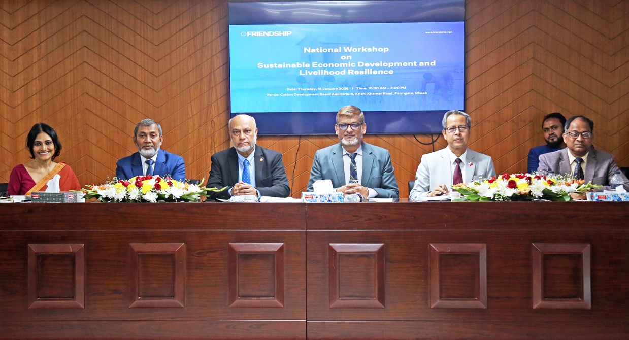 ঢাকা, ১৫ জানুয়ারি ২০২৬: বাংলাদেশের প্রেক্ষাপটে কৃষিখাতে টেকসই উদ্ভাবনগুলো নির্ধারণে আরও গুরুত্ব দেওয়া প্রয়োজন। একই সঙ্গে তিনি কৃষিখাতে ব্যবহৃত ইনপুটগুলো যেন টেকসই হয়, সে বিষয়টি নিশ্চিত করার আহ্বান জানিয়েছেন কৃষিবিদবৃন্দ। জলবায়ু পরিবর্তনজনিত ঝুঁকি মোকাবিলায় প্রান্তিক জনগোষ্ঠীর টেকসই জীবিকায়ন ও অর্থনৈতিক উন্নয়ন জোরদারের লক্ষ্যে এক জাতীয় কর্মশালা অনুষ্ঠিতি হয়েছে। আজ বৃহষ্পতিবার রাজধানীর তুলা ভবনে সামাজিক উন্নয়ন সংস্থা ফ্রেন্ডশিপ-এর উদ্যোগে ‘টেকসই অর্থনৈতিক উন্নয়ন ও জীবিকায়ন সহনশীলতা’ শীর্ষক এই কর্মশালা অনুষ্ঠিত হয়।