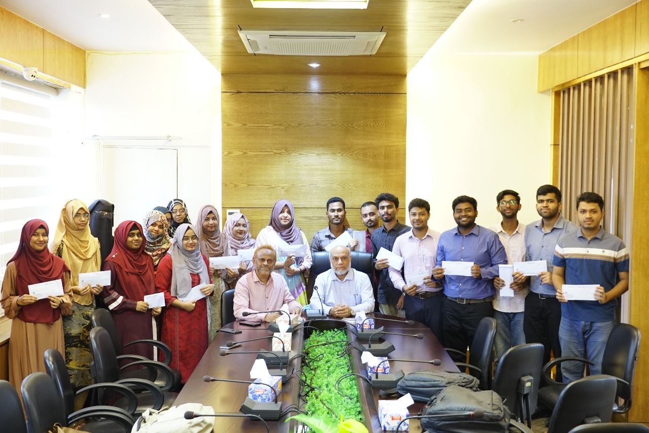 বৃহস্পতিবার (৩০ অক্টোবর) বিকেল ২টায় বিশ্ববিদ্যালয়ের উপাচার্যের কার্যালয়ে আনুষ্ঠানিকভাবে শিক্ষার্থীদের হাতে বৃত্তির অর্থ তুলে দেন বিশ্ববিদ্যালয়ের উপাচার্য অধ্যাপক ড. এ. কে. ফজলুল হক ভূঁইয়া। এ সময় উপস্থিত ছিলেন ছাত্র বিষয়ক উপদেষ্টা অধ্যাপক ড. মো. শহীদুল হক।