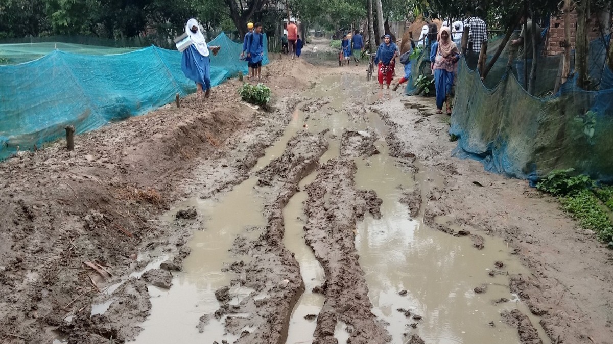 সড়কের নির্মাণ কাজ বন্ধ থাকায় সামান্য বৃষ্টিতেই কাদা হয়ে যাচ্ছে পুরো পথটি। এতে প্রতিদিন দুর্ভোগে পড়ছেন কল্যাপাড়া ফাজিল মাদ্রাসার ৪০০-৫০০ শিক্ষার্থী ও কল্যাপাড়া সরকারি প্রাথমিক বিদ্যালয়ের কোমলমতি ছাত্রছাত্রীরা। যানবাহন চলাচল তো দূরের কথা, পায়ে হেঁটে চলাও কষ্টসাধ্য হয়ে পড়েছে।