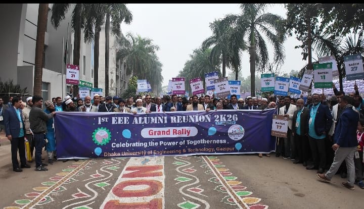 ঢাকা প্রকৌশল ও প্রযুক্তি বিশ্ববিদ্যালয় (ডুয়েট), গাজীপুর-এর ইলেকট্রিক্যাল এন্ড ইলেকট্রনিক ইঞ্জিনিয়ারিং (ইইই) বিভাগের আয়োজনে উৎসবমুখর পরিবেশে অনুষ্ঠিত হলো বিভাগের প্রথম অ্যালামনাই রিইউনিয়ন। বর্ণাঢ্য র্যালি, পায়রা ও বেলুন উড়ানোর মধ্য দিয়ে আজ শনিবার (৩ জানুয়ারি) দিনব্যাপী আয়োজিত এ অনুষ্ঠানের উদ্বোধন করেন প্রধান অতিথি বিশ্ববিদ্যালয়ের মাননীয় উপাচার্য অধ্যাপক ড. মোহাম্মদ জয়নাল আবেদীন।
