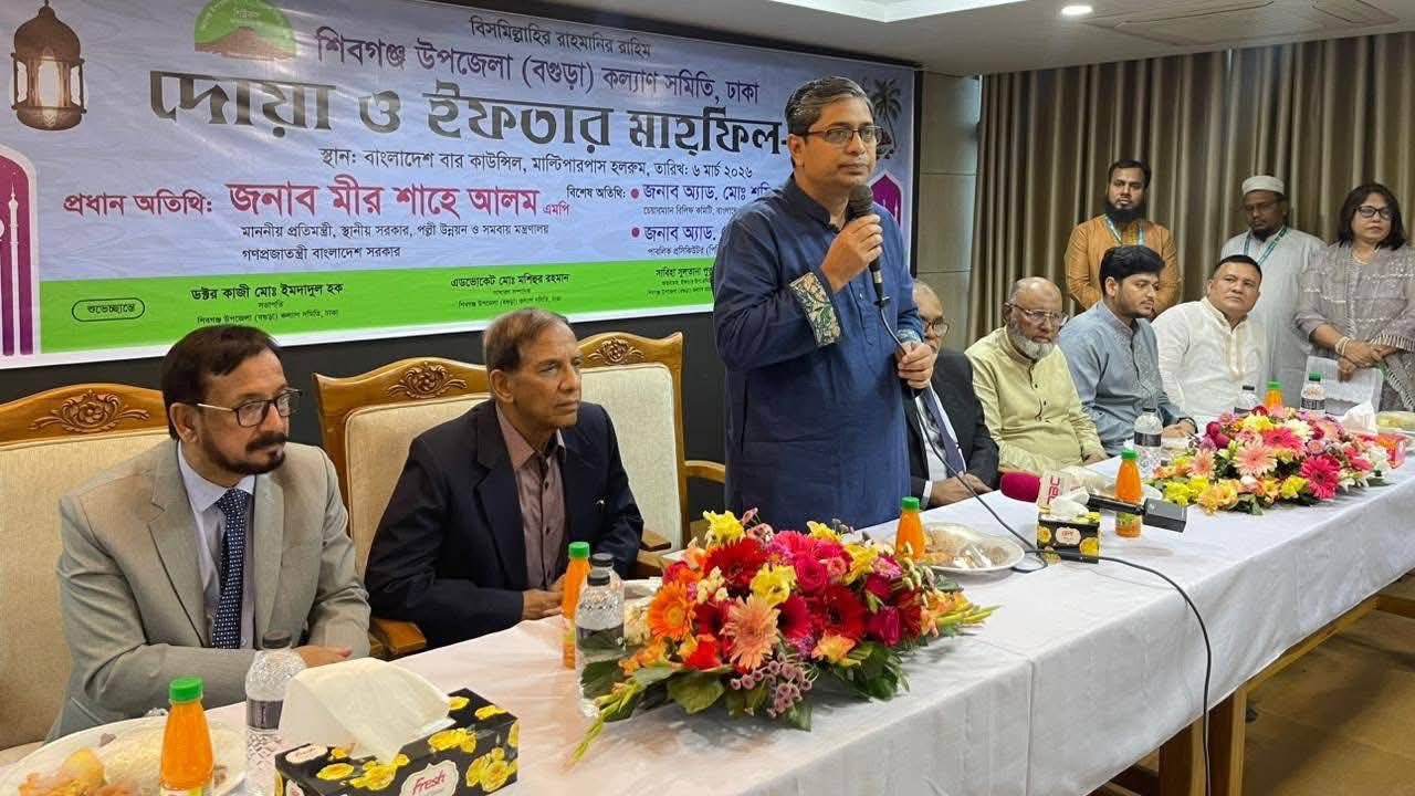 শিবগঞ্জ উপজেলা (বগুড়া) কল্যাণ সমিতি, ঢাকার উদ্যোগে বার্ষিক দোয়া ও ইফতার মাহফিল গতকাল বাংলাদেশ বার কাউন্সিল ভবনে অনুষ্ঠিত হয়েছে। অনুষ্ঠানে সম্প্রতি অনুষ্ঠিত জাতীয় নির্বাচনে বিপুল ভোটে নির্বাচিত হয়ে সংসদ সদস্য এবং পরবর্তীতে স্থানীয় সরকার, পল্লী উন্নয়ন ও সমবায় মন্ত্রণালয়ের প্রতিমন্ত্রী হিসেবে দায়িত্বপ্রাপ্ত শিবগঞ্জ উপজেলার কৃতি সন্তান মীর শাহে আলম-কে ফুলেল সংবর্ধনা ও সম্মাননা ক্রেস্ট প্রদান করা হয়।
