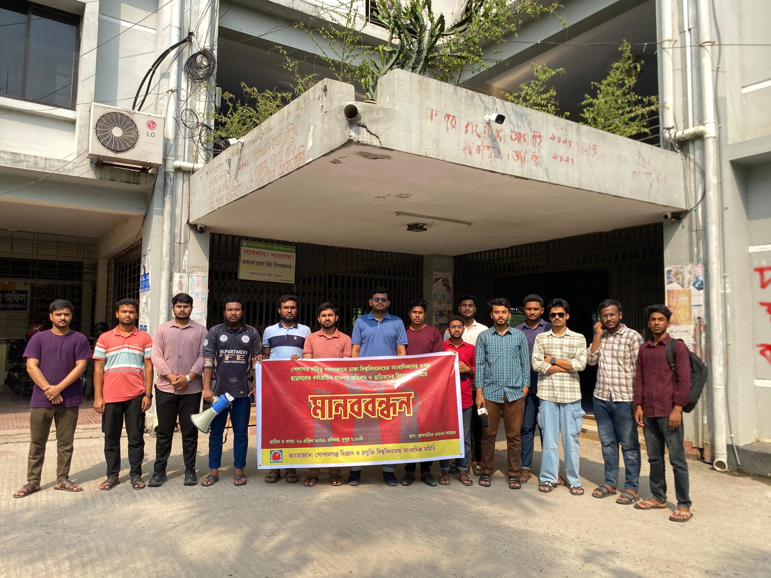 মানববন্ধনে উপস্থিত ছিলেন বিভিন্ন প্রিন্ট ও ইলেকট্রনিক মিডিয়ায় কর্মরত বিশ্ববিদ্যালয়ের প্রতিনিধিগণ।