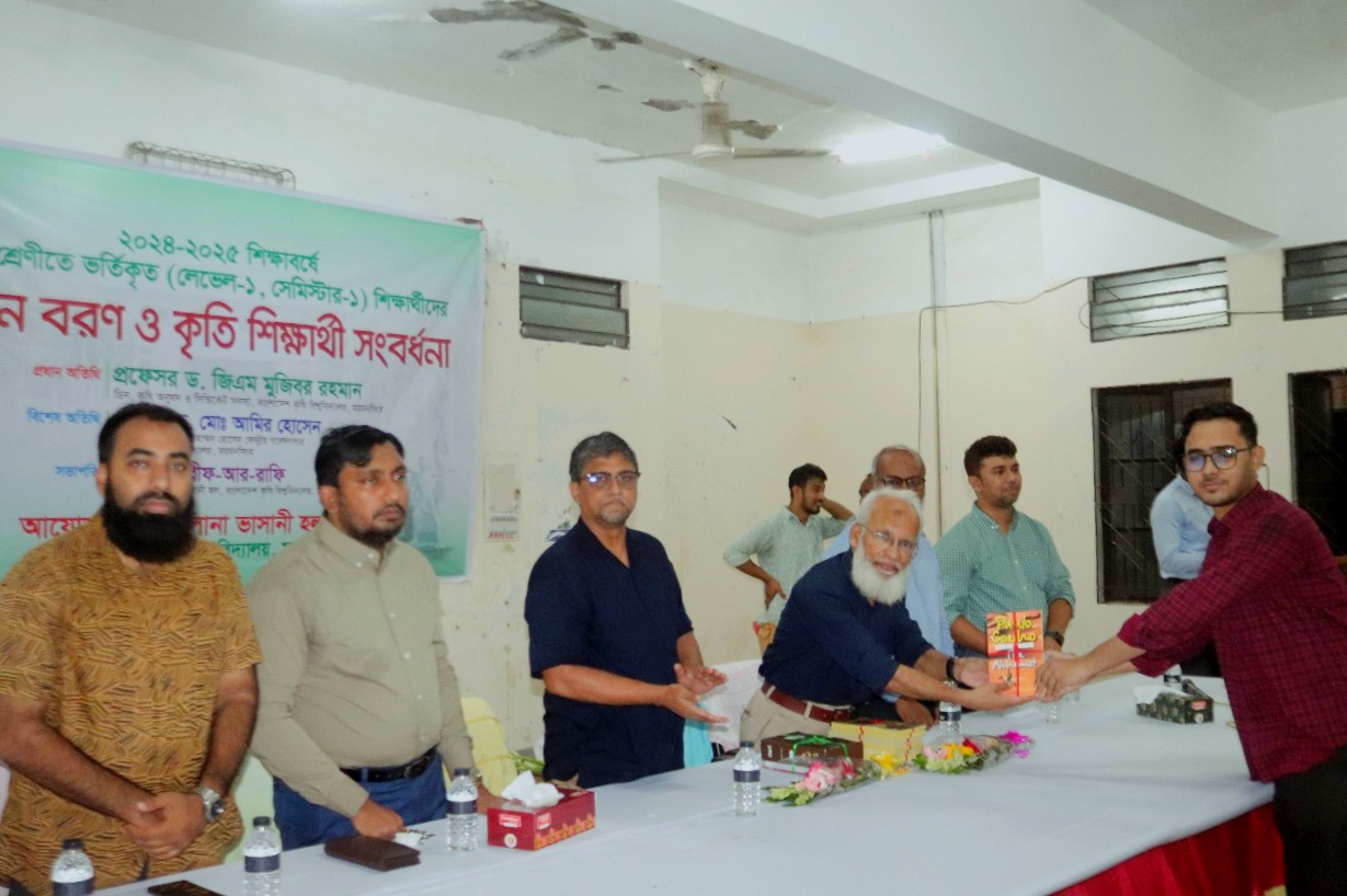 বাংলাদেশ কৃষি বিশ্ববিদ্যালয়ের (বাকৃবি) আবাসিক মাওলানা ভাসানী হলে ২০২৪-২৫ শিক্ষাবর্ষে স্নাতক (লেভেল-১, সেমিস্টার-১) নবাগত ছাত্রদের নবীনবরণ অনুষ্ঠান-২০২৫ ও কৃতি শিক্ষার্থী সংবর্ধনা অনুষ্ঠিত হয়েছে। রবিবার (১০ আগস্ট) সন্ধ্যায় হলের কমনরুমে আয়োজিত এ অনুষ্ঠানে নতুন শিক্ষার্থীদের ফুল ও উপহার দিয়ে বরণ করা হয়। পরে সিজিপিএ-ভিত্তিক মেধা তালিকায় শীর্ষে থাকা ওই হলের ১০ জন কৃতি শিক্ষার্থীকে সংবর্ধনা প্রদান করা হয়।