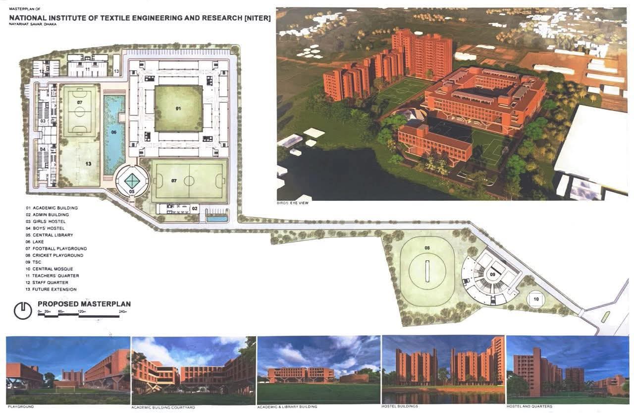 উল্লেখ্য, নিটার গভর্নিং বডির ৭৩তম সভায় প্রতিষ্ঠানটির একাডেমিক ভবন, প্রশাসনিক ভবন, ছাত্র-ছাত্রী আবাসিক হল, থিয়েটার ভবনসহ বিভিন্ন স্থাপনা দ্রুত নির্মাণের লক্ষ্যে আধুনিক সুযোগ-সুবিধাসম্পন্ন আন্তর্জাতিক মানের একটি মাস্টার প্ল্যান প্রণয়নের সিদ্ধান্ত গৃহীত হয়। সে সিদ্ধান্তের ধারাবাহিকতায় জুবায়ের হাসান আর্কিটেক্টস-কে মাস্টার প্ল্যান, লে-আউট ডিজাইন এবং ভবন নির্মাণের বিস্তারিত নকশা (স্থাপত্য, কাঠামোগত, বৈদ্যুতিক, পানিনিষ্কাশন, নিরাপত্তা ব্যবস্থা ইত্যাদি) প্রস্তুতের দায়িত্ব প্রদান করা হয়।