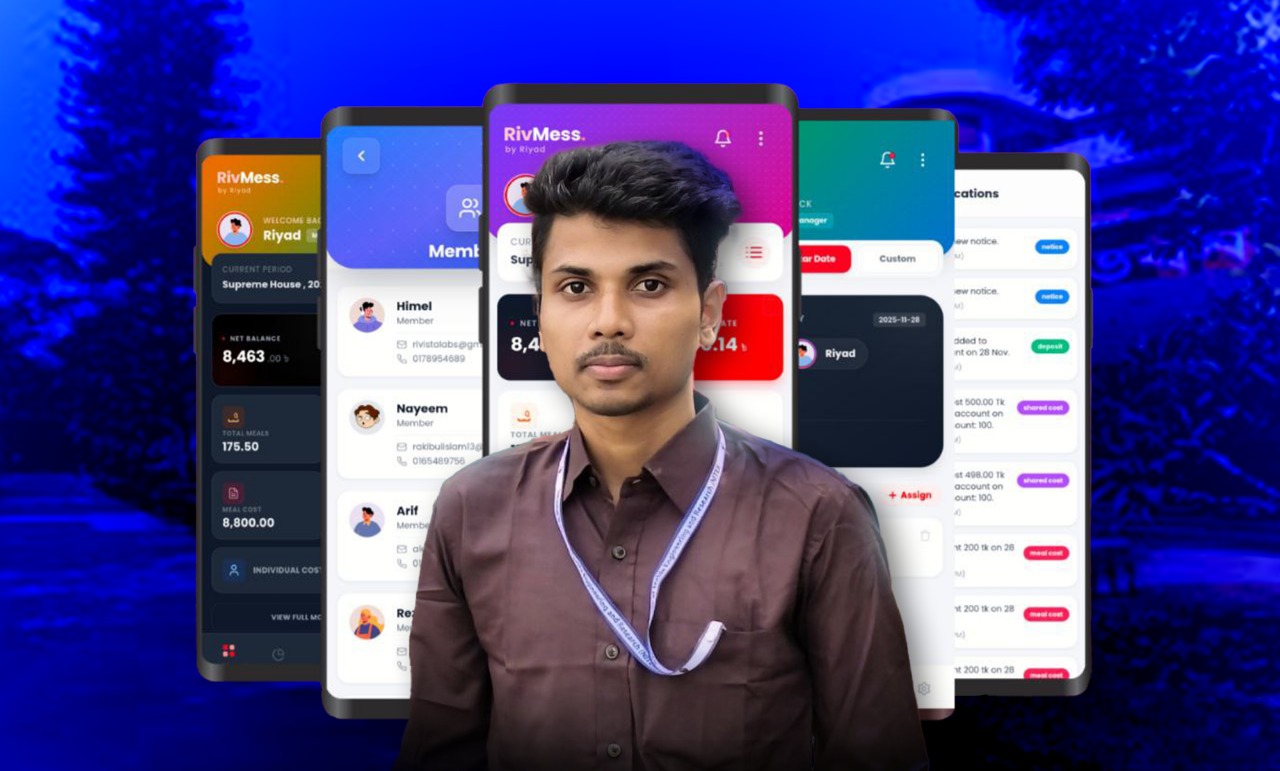 ন্যাশনাল ইনস্টিটিউট অফ টেক্সটাইল ইঞ্জিনিয়ারিং অ্যান্ড রিসার্চ (নিটার) এর টেক্সটাইল ইঞ্জিনিয়ারিং বিভাগের ১৩ ব্যাচের শিক্ষার্থী রাকিবুল ইসলাম রিয়াদ শিক্ষার্থীদের দৈনন্দিন মেস ও হোস্টেল ব্যবস্থাপনা আরও সহজ করতে তৈরি করেছেন একটি কার্যকরী মোবাইল অ্যাপ।