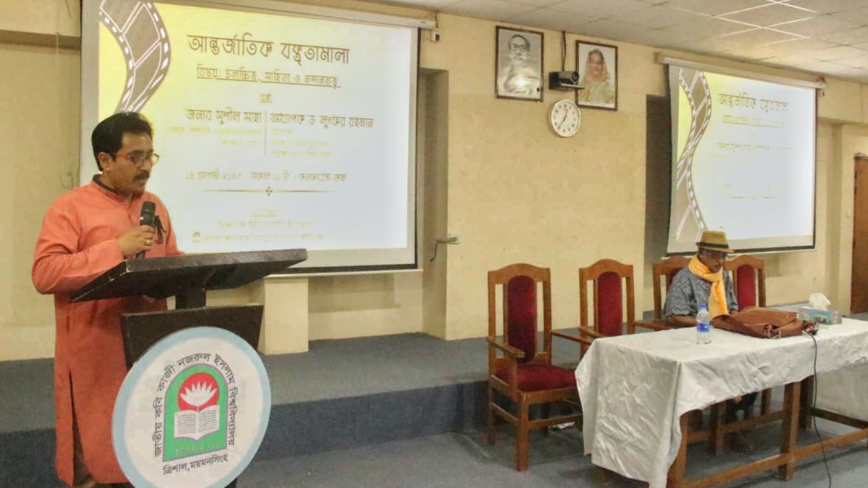 সোমবার (১৪ আগস্ট) ফিল্ম এন্ড মিডিয়া স্টাডিজ বিভাগের উদ্যোগে জাতীয় কবি কাজী নজরুল ইসলাম বিশ্ববিদ্যালয়ে বিশ্ববিদ্যালয়ের প্রশাসনিক ভবনের কনফারেন্স কক্ষে ‘চলচ্চিত্র, সাহিত্য ও নন্দনতত্ত্ব’ শীর্ষক আন্তর্জাতিক বক্তৃতামালা অনুষ্ঠিত হয়েছে।
