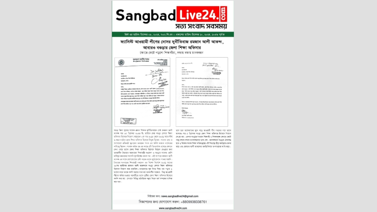 সম্প্রতি সোশ্যাল মিডিয়ায় একটি সংবাদ ছড়িয়ে পড়েছে, যার শিরোনাম “ফ্যাসিস্ট আওয়ামী লীগের দোসর দুর্নীতিবাজ রমজান আলী আকন্দ, আবারও বগুড়ার জেলা শিক্ষা অফিসার”। এই সংবাদটি কিছু ফেক আইডি ব্যবহার করে “সংবাদলাইভ২৪ ডটকম” এর লোগোসহ প্রচার করা হয়েছে। তবে, সংশ্লিষ্ট সংবাদমাধ্যমটি এ ধরনের কোনো প্রতিবেদন প্রকাশ করেনি, এবং তারা এটি ফেক নিউজ বলে ঘোষণা করেছে।