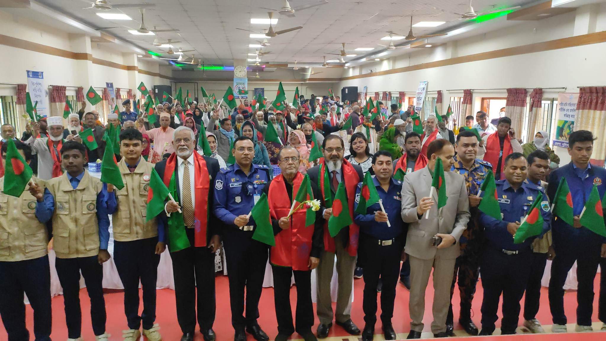 অনুষ্ঠান শেষে প্রবীনদের হাত থেকে তরুণদের হাতে বাংলাদেশের পতাকা হস্তান্তর করা হয়।