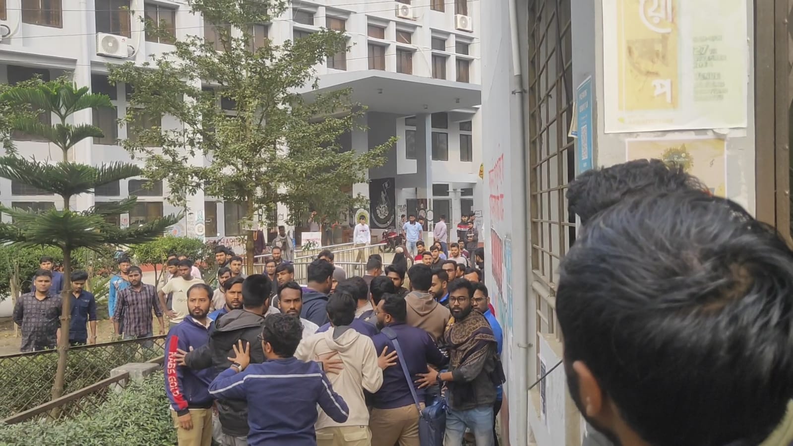 শনিবার (২৫ জানুয়ারি) বিশ্ববিদ্যালয়ের প্রশাসনিক ভবনের সামনে এ ঘটনা ঘটে। অভিযোগ রয়েছে, ছাত্রলীগ নেতাকর্মীরা আন্দোলনকারীদের লক্ষ্য করে বর্বরোচিত হামলা চালায়। এসময় নিষিদ্ধ সংগঠনের পক্ষে স্লোগান দেয়ার ঘটনাও প্রত্যক্ষ করা গেছে।