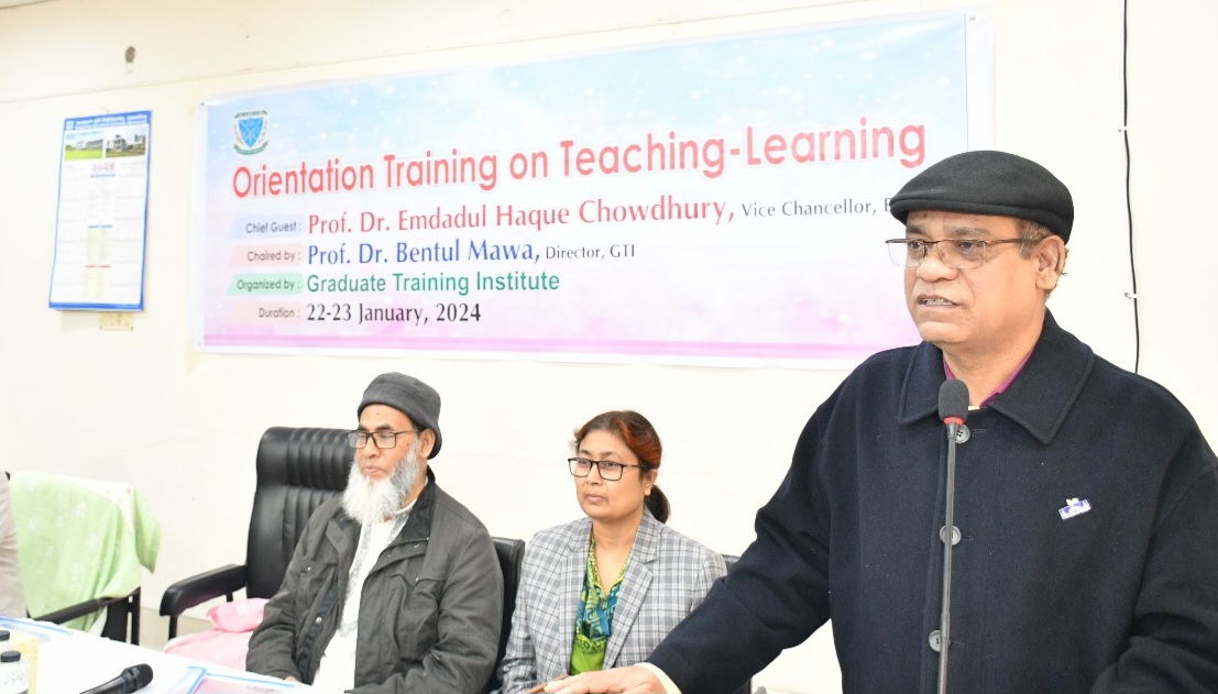 বাংলাদেশ কৃষি বিশ্ববিদ্যালয়ের (বাকৃবি) উপাচার্য অধ্যাপক ড. এমদাদুল হক চৌধুরী বলেছেন, ‘ভালো শিক্ষক হওয়ার পাশাপাশি ভালো মানুষ হতে হবে। একজন শিক্ষকের পরিচিয় তৈরি হয় তার কাজের মাধ্যমে।’ বাংলাদেশ কৃষি বিশ্ববিদ্যালয়ে (বাকৃবি) নবনিযুক্ত ২৩ জন লেকচারারের জ্ঞান ও পেশাগত দক্ষতা উন্নয়নের লক্ষ্যে দুইদিন ব্যাপী টিচিং-লার্নিং শীর্ষক প্রশিক্ষণ কোর্সের উদ্বোধনী অনুষ্ঠানে প্রধান অতিথির বক্তব্যে তিনি এসব কথা বলেন। সোমবার (২২ জানুয়ারি ২০২৪) বিশ্ববিদ্যালয়ের গ্র্যাজুয়েট ট্রেনিং ইন্সটিটিউটের (জিটিআই) প্রশিক্ষণ কক্ষে ওই প্রশিক্ষণ কর্মশালার আয়োজন করা হয়।