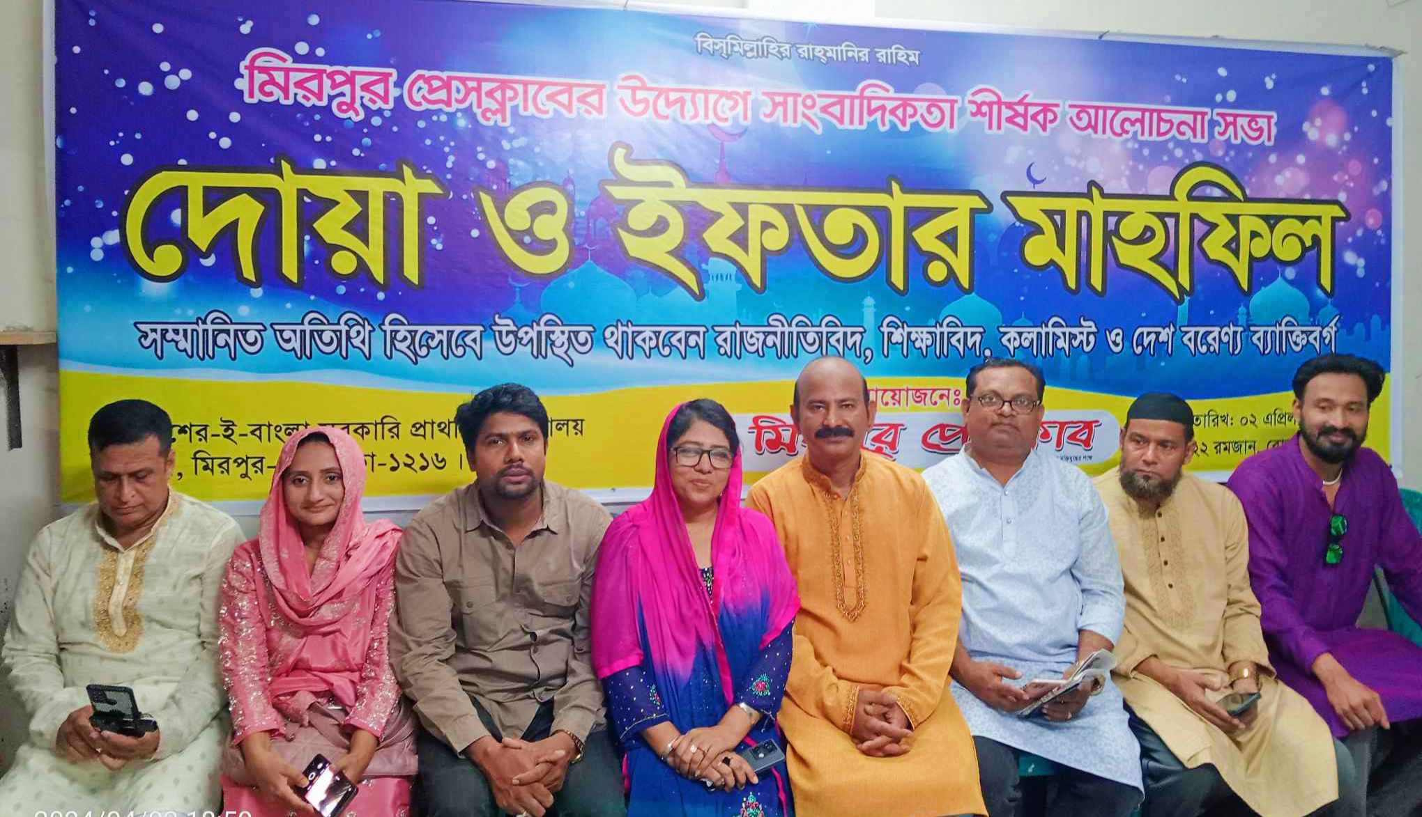 এদিন সভাপতির বক্তব্যের মধ্যে দিয়ে শেষ হয় মিরপুর প্রেসক্লাবের দোয়া ও ইফতার মাহফিল।