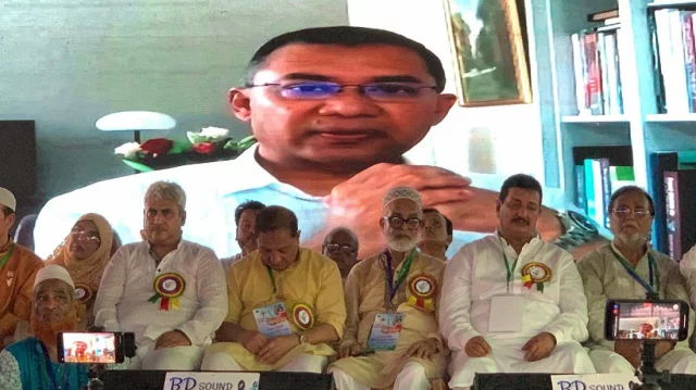 তারেক রহমান বলেন, ‘স্বৈরাচার সরকার জনগণের আন্দোলনের মুখে পালিয়ে যেতে বাধ্য হয়েছে। তারা এক যুগেরও বেশি সময় ক্ষমতা দখল করে ছিল। কীভাবে তারা গুম, খুন, হত্যা শুরু করেছিল আমরা দেখেছি। তারা বিরোধী মতের মানুষের বিরুদ্ধে কীভাবে মিথ্যা মামলা দিয়েছিল দেখেছি। এই সম্মেলনে যারা উপস্থিত তাদের অধিকাংশ মানুষ মিথ্যা মামলায় জর্জরিত হয়েছেন। শুধু বিএনপি নয়, বিএনপির বাইরেও বহু রাজনৈতিক দল আমাদের সঙ্গে ছিল, ছোট-বড় যেমন দল হোক না কেন, যারা মানুষের অধিকার আদায়ের লক্ষ্যে সোচ্চার ছিল, প্রত্যেকের বিরুদ্ধে তারা মিথ্যা মামলা দিয়েছিল। গুম-খুন করেছে। আমরা রাজনীতি করেছি, কিন্তু পরিবারের যে সদস্য রাজনীতি করেনি—তাকেও হয়রানি করা হয়েছে।’