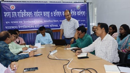 ময়মনসিংহের বিভাগীয় মৎস্য অধিদপ্তরে "মৎস্য চাষ যান্ত্রিকীকরণ: বর্তমান অবস্থা ও ভবিষ্যৎ করনীয়" শীর্ষক কর্মশালা আয়োজিত হয়েছে। রবিবার (১১ জুন) সকাল ১০টায় ময়মনসিংহ শহরে অবস্থিত মৎস্য অধিদপ্তরের উপপরিচালকের কার্যালয়ে কর্মশালাটি অনুষ্ঠিত…