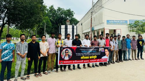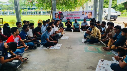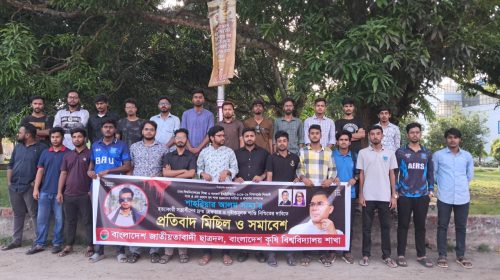 ঢাকা বিশ্ববিদ্যালয়ের স্যার এ এফ রহমান হল ছাত্রদলের সাহিত্য ও প্রকাশনা সম্পাদক শাহরিয়ার আলম সাম্য-কে নৃশংসভাবে হত্যার প্রতিবাদে, হামলাকারীদের দৃষ্টান্তমূলক শাস্তি ও নিরাপদ ক্যাম্পাস নিশ্চিতের দাবিতে বাংলাদেশ কৃষি বিশ্ববিদ্যালয়ে অবস্থান…