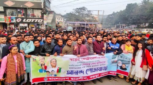 আশরাফুল ইসলাম আকাশ, বগুড়া: দেশে স্বপ্নের মেট্রোরেলের যাত্রা শুরু হয়েছে। এই স্বপ্ন বাস্তবায়নের রূপকার প্রধানমন্ত্রী ও আওয়ামী লীগ সভাপতি শেখ হাসিনার প্রতি কৃতজ্ঞতা জানিয়ে আনন্দ শোভাযাত্রা করেছে বগুড়া জেলা ছাত্রলীগ।…
