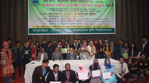 বাংলাদেশ কৃষি বিশ্ববিদ্যালয়ে (বাকৃবি) ষষ্ঠ আন্তঃঅনুষদীয় বিতর্ক প্রতিযোগিতার পুরস্কার বিতরণী অনুষ্ঠিত হয়েছে। সোমবার (২৭ জানুয়ারি) সন্ধ্যা ৬টায় বিশ্ববিদ্যালয়ের শিল্পাচার্য জয়নুল আবেদীন মিলনায়তনে এই অনুষ্ঠানের আয়োজন করে বাকৃবি ডিবেটিং সংঘ। অনুষ্ঠানের…