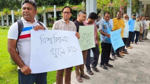 শিক্ষার্থী হত্যা ও নিপীড়ন বন্ধ, গণ গ্রেফতার বন্ধ, হত্যাকান্ডে জড়িতদের বিচারের মাধ্যমে উপযুক্ত শাস্তি নিশ্চিতকরণ এবং অবিলম্বে শিক্ষা প্রতিষ্ঠান খুলে দেওয়ার দাবিতে বাংলাদেশ কৃষি বিশ্ববিদ্যালয়ে (বাকৃবি) সাধারণ শিক্ষকদের ব্যানারে মার্চ…