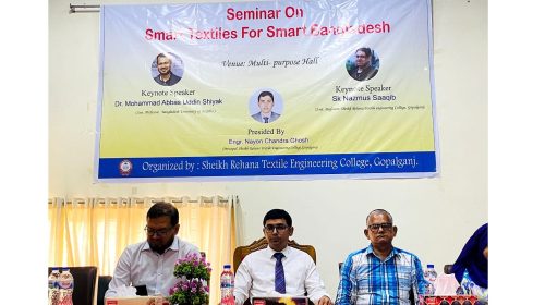 শেখ রেহানা টেক্সটাইল ইঞ্জিনিয়ারিং কলেজে (এসআরটেক) আজ মঙ্গলবার (৯ জুলাই) "স্মার্ট টেক্সটাইলস ফর স্মার্ট বাংলাদেশ" শীর্ষক সেমিনার অনুষ্ঠিত হয়। উক্ত সেমিনারে প্রধান অতিথি হিসেবে উপস্থিত ছিলেন বাংলাদেশ টেক্সটাইল বিশ্ববিদ্যালয়ের (বুটেক্স)…