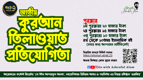 দেশে শুরু হলো জাতীয় কুরআন তিলাওয়াত প্রতিযোগিতা-২০২৪। ১০ বছর পর্যন্ত শিশুরা ঘরে বসেই অংশগ্রহন করতে পারবে এ প্রতিযোগিতায়। প্রতিযোগিতার আয়োজনে করেছে জনপ্রিয় কন্টেন্ট ক্রিয়েটর 'গো উইথ আশরাফুল আলম' এবং সহযোগিতায়…