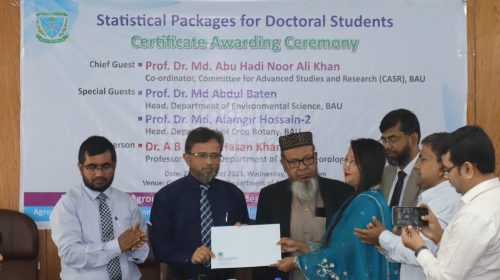 বাংলাদেশ কৃষি বিশ্ববিদ্যালয়ে (বাকৃবি) পিএইচডি ও স্নাতকোত্তর শিক্ষার্থীদের স্ট্যাটিস্টিক্যাল প্যাকেজ কোর্সের সনদ বিতরণী অনুষ্ঠিত হয়েছে। বুধবার (২২ নভেম্বর ২০২৩ ) এগ্রোমেটিওরোলজি বিভাগের সম্মেলন কক্ষে এই সনদ বিতরণী অনুষ্ঠিত হয়। অনুষ্ঠানে…