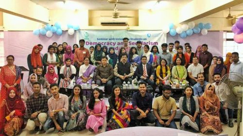 জাতীয় কবি কাজী নজরুল ইসলাম বিশ্ববিদ্যালয়ে বাংলাদেশ নারী প্রগতি সংঘ এবং উইমেন পিস ক্যাফের আয়োজনে 'ডেমোক্রেসি এন্ড সেকুলারিজম ফর জেন্ডার ইক্যুয়ালিটি’ র্শীষক সেমিনার অনুষ্ঠিত হয়েছে। বুধবার (৪ অক্টোবর) বিশ্ববিদ্যালয়ের কেন্দ্রীয়…