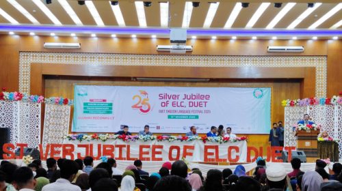 ঢাকা প্রকৌশল ও প্রযুক্তি বিশ্ববিদ্যালয়ে (ডুয়েট) আজ (১৫ নভেম্বর) অনুষ্ঠিত হলো দিনব্যাপী “DUET English Language Festival 2025”। ইংলিশ ল্যাঙ্গুয়েজ ক্লাব (ELC), ডুয়েটের উদ্যোগে এবং ক্লাবের সিলভার জুবিলি উপলক্ষে আয়োজিত এই…