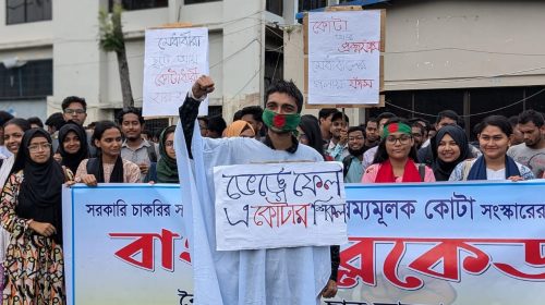 সারা বাংলাদেশের সাধারণ শিক্ষার্থীদের আন্দোলনে সঙ্গে একাত্মতা প্রকাশ করে টানা চার দিন ধরে সরকারি চাকরিতে কোটাব্যবস্থা পুনর্বহালের রায় বাতিল এবং কোটাপদ্ধতি সংস্কারের দাবিতে আন্দোলন করছে বঙ্গমাতা শেখ ফজিলাতুন্নেছা মুজিব বিজ্ঞান…