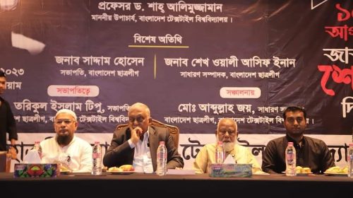 বাংলাদেশ টেক্সটাইল বিশ্ববিদ্যালয়ে (বুটেক্স) বঙ্গবন্ধু শেখ মুজিবুর রহমান ও বঙ্গমাতা শেখ ফজিলাতুন্নেছা মুজিবসহ ১৯৭৫ সালের ১৫ আগষ্ট শহীদদের স্মরণে গত মঙ্গলবার (২৯ আগস্ট) বিশ্ববিদ্যালয়ের অডিটোরিয়ামে আয়োজিত এক আলোচনা সভায় স্বরাষ্ট্রমন্ত্রী…