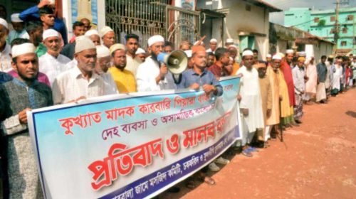 বগুড়ায় মাদক ব্যবসা ও অসামাজিক কার্যকলাপ বন্ধের দাবিতে এলাকাবাসীর মানববন্ধন